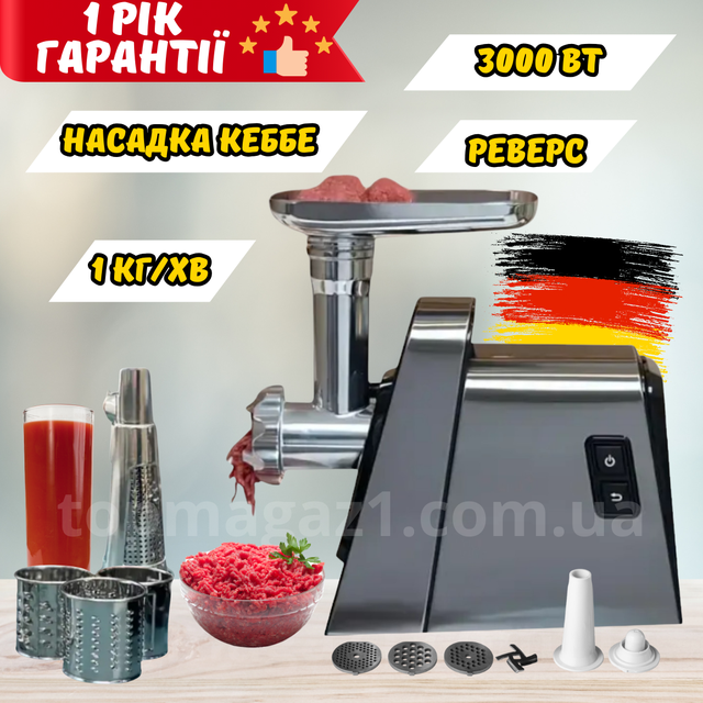 М'ясорубка з соковижималкою Rainberg 3000 Вт електром'ясорубка з насадками для нарізки овочів побутова реверс