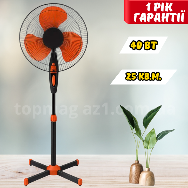 Підлоговий вентилятор для дому та офісу 40Вт осьовий вентилятор на 3 лопаті 400 мм з функцією повороту та нахилу